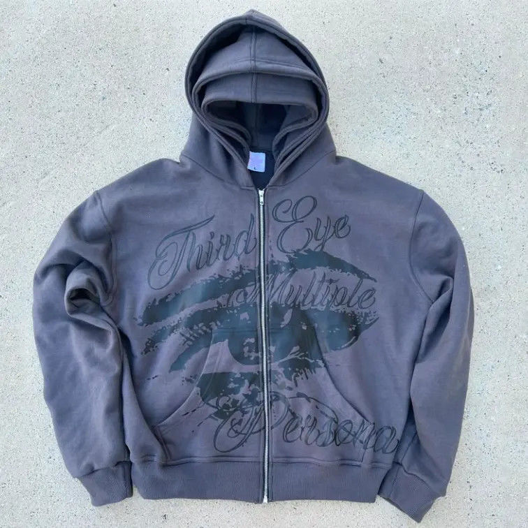 Custom Screen Print Logo 100% Cotton French Terry Oversized Hoodie Boxy Cropped Zip Up Triple Hood Hoodies for Men |